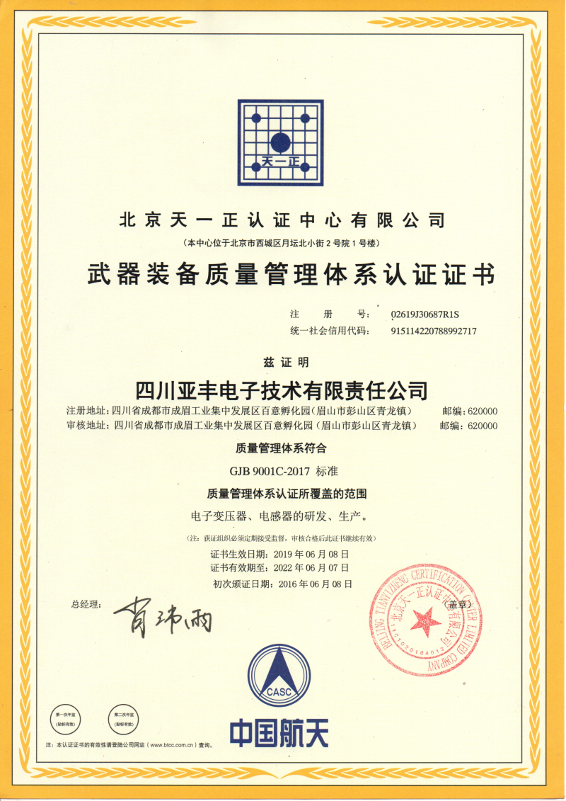 6月5日至6日,亞豐電子順利通過(guò)國(guó)軍標(biāo)質(zhì)量管理體系2019年度監(jiān)督暨換版現(xiàn)場(chǎng)審核。